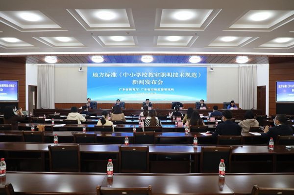 10月22日上午,廣東省教育廳、廣東省市場監督管理局舉行《廣東省地方標準<中小學校教室照明技術規范>》新聞發布會,介紹廣東省兒童青少年近視防控工作進展,以及廣東省地方標準《中小學校教室照明技術規范》的編制、內容、主要特點及預期效果。華輝教育照明(品牌“華輝照明”)受邀出席。