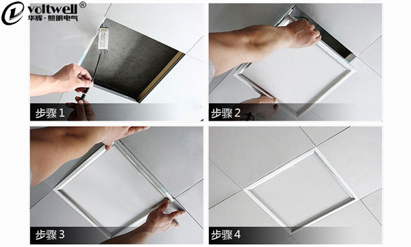 一、嵌入式安裝:這是最常見的一種安裝方式。首先拿去一塊天花板,把LED面板燈的驅動放到旁邊的天花板,連接上電源線,然后放上面板燈就可以了。