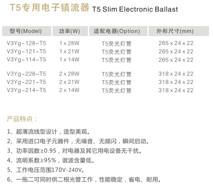 T5電子鎮(zhèn)流器適配各種T5燈具。 |